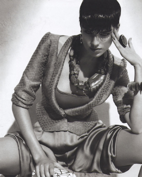 Furthermore she became the face of Giorgio Armani, worked together with Mario Testino, Steven Meisel and Jean Paul Gaultier engaged her for the campaign of his perfume ‘Madame’. Aygness Deyn is now one of the most coveted faces on international runways and advertisements. Apart from her modeling career she occasionally DJs and has musical aspirations - having been in 3 various short-lived bands: 5 O‘Clock Heroes, Lucky Knitwear and Gene Jacket.